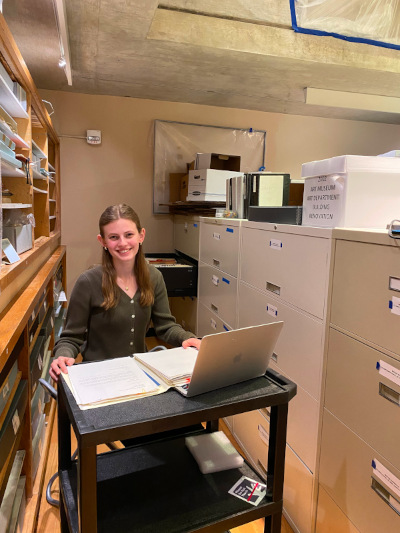 For this project, I was assisting with the digitization of the museum’s exhibition records, working to ensure that information from every exhibition since 1931 is accessible for Museum staff in an online database. The Museum holds paper copies of these records in organized filing cabinets, and my role involves reviewing, organizing, and entering key details into the digital system. This work has opened my eyes to the importance of exhibition files in preserving a museum’s history and shaping future curatorial decisions.