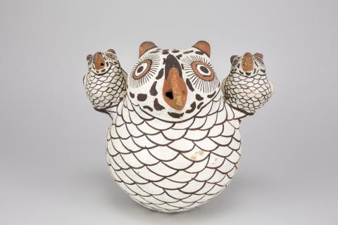 Possibly Nellie Bica (Zuni Pueblo, 1905-1998), Storyteller Owl, early 20th century, earthenware with white slip and red and black pigments, Gift of the estate of Elizabeth W. Russell, 1991.24.11