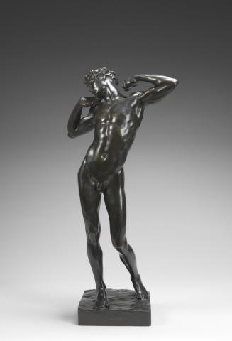 Leighton’s idea for this revolutionary sculpture was inspired by a surprisingly casual occurrence in his studio. After a long day of posing, his Italian model Giuseppe Valona, stood up, arched his back, stretched his arms, and gave a great yawn. Leighton immediately sat down and captured this image in a clay modello. Although it may have had its origins in life, there can be no doubt that Michelangelo’s Slave and Donatello’s David were not far from the artist’s mind.