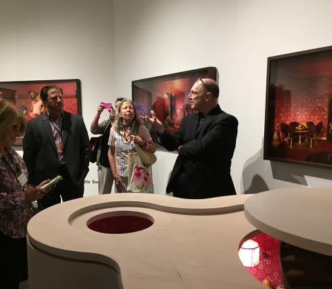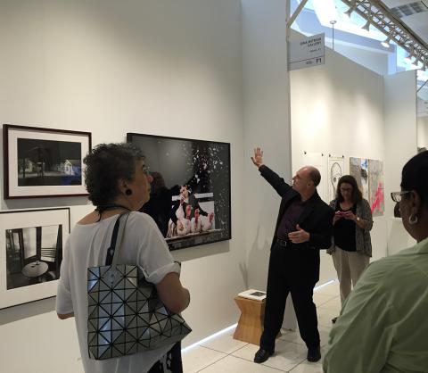 Members of MHCAM’s Friends of Art view photographs by French artist Laetitia Soulier at the Claire Oliver booth at Art Basel Miami Beach.