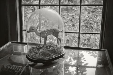 Baby deer in a parlor dome, from the collection of the Joseph Allen Skinner Museum, SK Q.A.1.8. Photograph by James Gehrt, 2012.